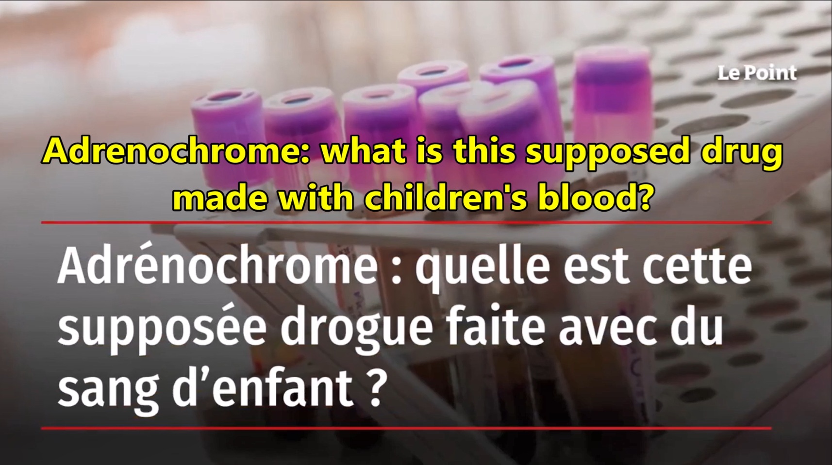 Here is the legend surrounding adrenochrome, a molecule produced by the oxidation of adrenaline, as reported by the daily newspaper « Le Parisien. » The theory is based on numerous disappearances of children, claiming that they are kidnapped, tortured, and killed during satanic rituals. The torture supposedly triggers the production of adrenaline, which then oxidizes to become adrenochrome.