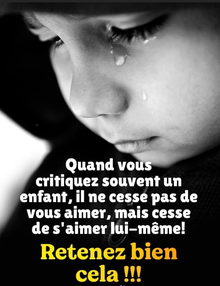 Quand vous critiquez souvent un enfant, il ne cesse pas de vous aimer, mais cesse de s’aimer lui-même.