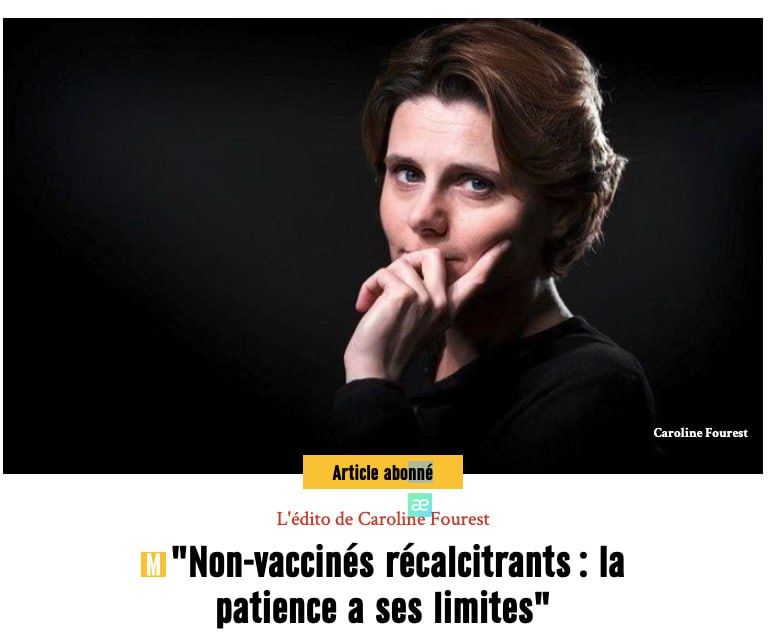 « Si nous sommes frappés par une quatrième vague, ce ne sera ni la faute de la mère Nature ni même, pour une fois, celle du gouvernement. Mais la faute des non-vaccinés. À cause d’eux, nous risquons de perdre la course contre la montre : monter le niveau d’immunité collective avant que le virus n’ait trop muté. Non-vaccinés récalcitrants, la patience a ses limites. »